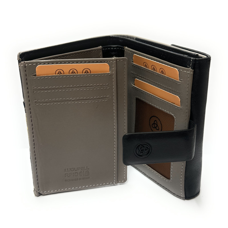 Combina estilo moderno, funcionalidad y seguridad con esta cartera de diseño exclusivo de Lugupell. Fabricada con materiales resistentes y un acabado moderno, destaca por su estética, su protección RFID.