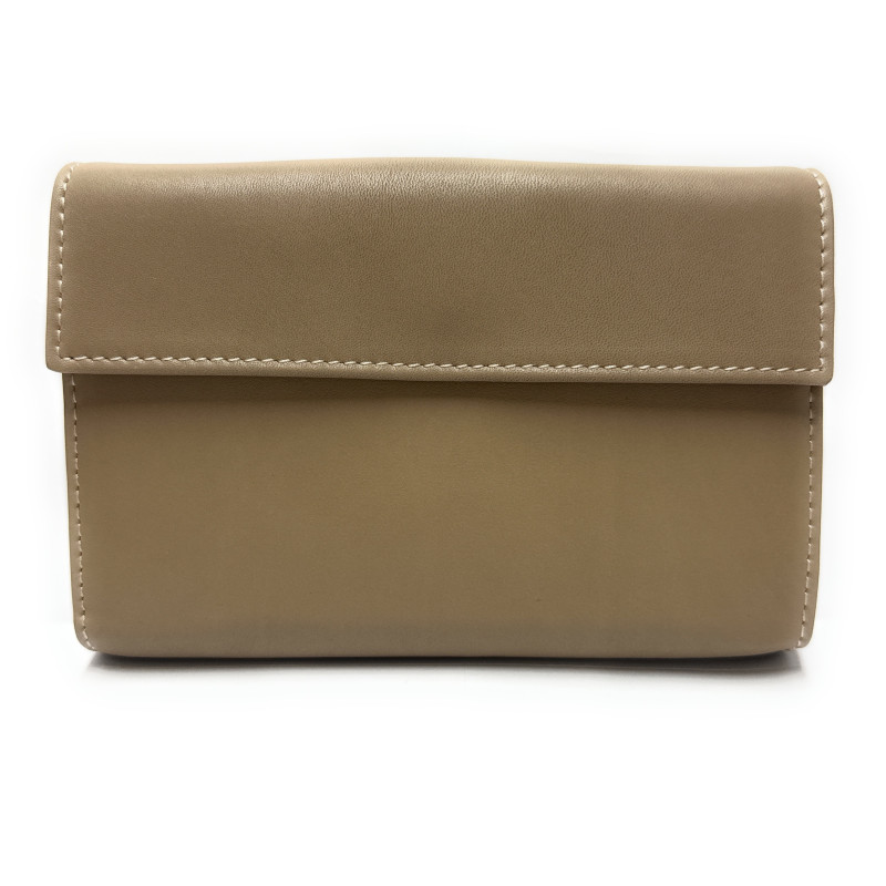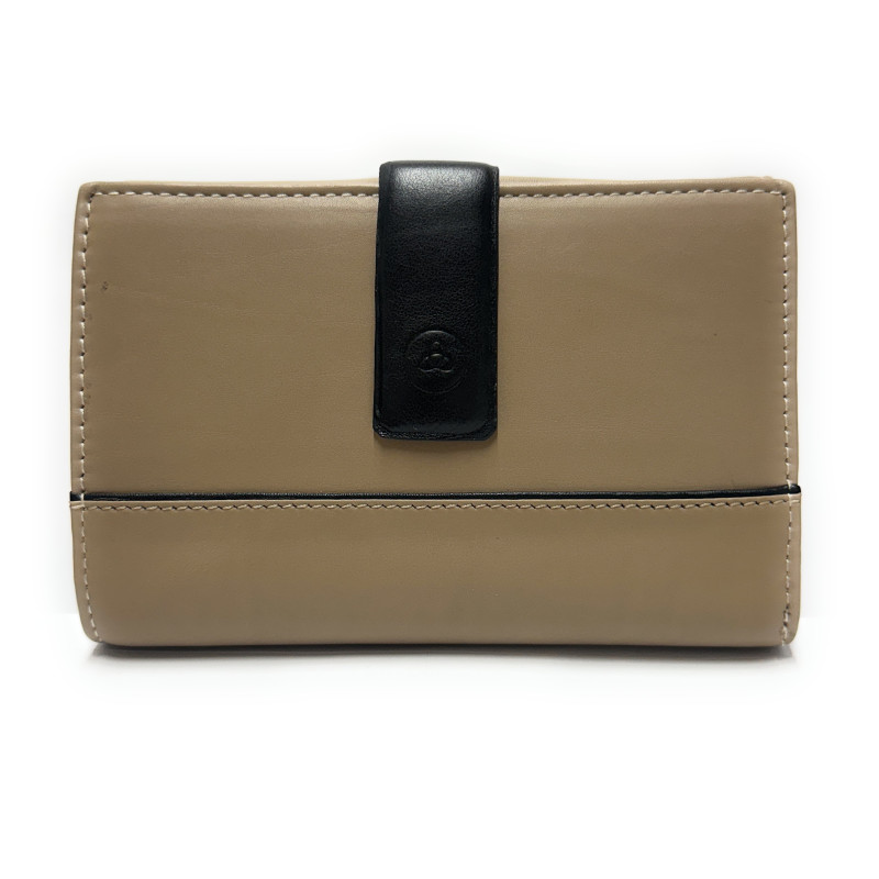 En la otra cara, portamonedas cerrado con solapa. fuelle de tres departamentos, uno de ellos con cremallera.
