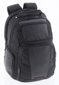 Mochila business tamaño grande. Fabricada en material poliéster. Compartimento posterior con protección para portátil de hasta 17 pulgadas y tablet.